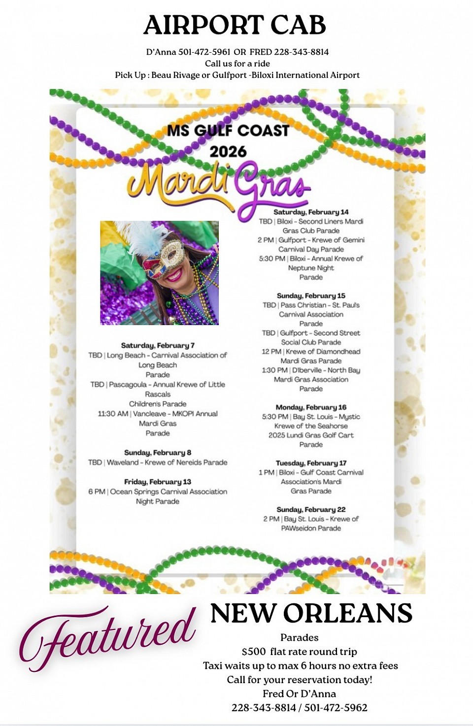Gulfport-Biloxi International Airport. Pick up’s and drop offs for Beau Rivage at main foyer at the doors. Airport Cab, We go any where!